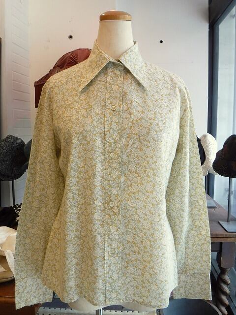 ヨーロッパ古着 pale khaki white orange floral 60's shirt