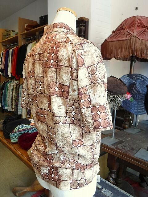 ヨーロッパ古着 brown tone geometry graphic polo like top