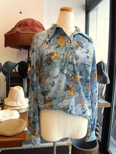 ヨーロッパ古着 blue tone graphical long sleeve 60's shirt