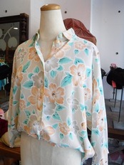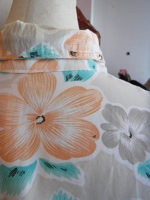 ヨーロッパ古着 pale orange green gray floral dolman sleeve 80's shirt