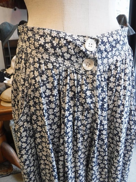 ヨーロッパ古着 navy white floral gathered skirt