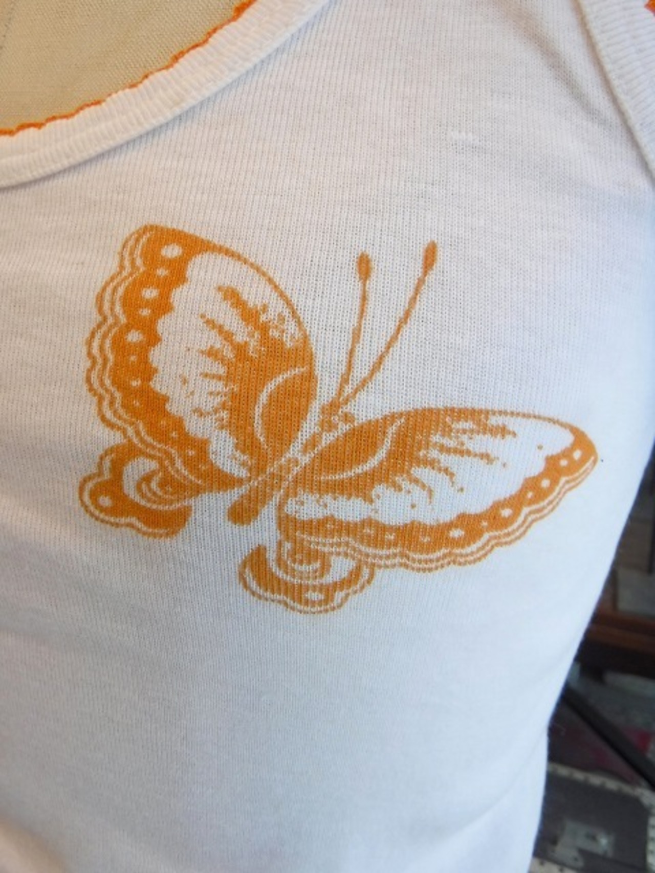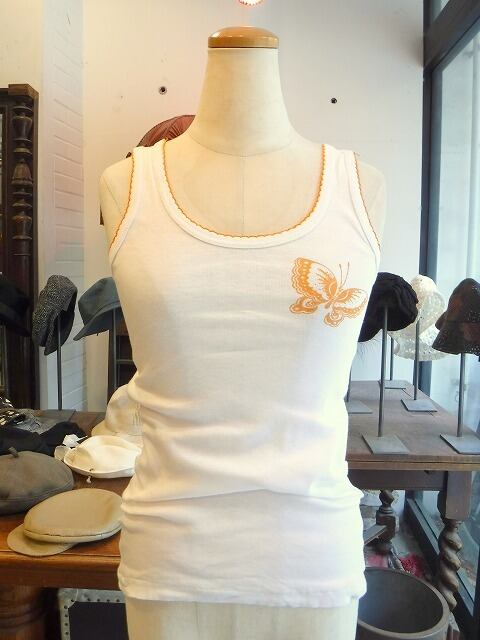 ヨーロッパ古着 white orange rim butterfly orint cotton tanktop